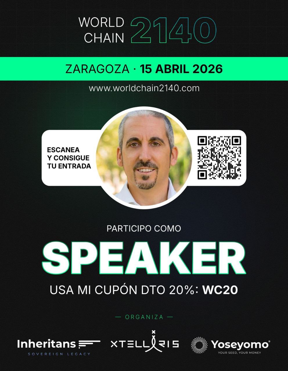 🔥 El 15 de abril de 2026 Zaragoza se convierte en el epicentro del mundo cripto. Llega WorldChain 2140, uno de los eventos más potentes del ecosistema en España, y voy a estar allí presentando junto a Yan del canal Global Yan.